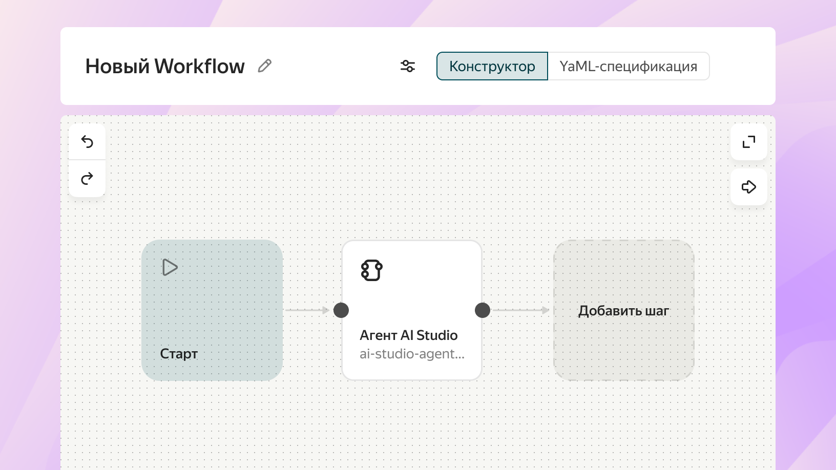 Визуальный конструктор бизнес-логики для агентских и асинхронных сценариев. Позволяет задавать последовательности, условия и ветвления для агентов и фоновых процессов: от парсинга данных до интеграций. Поддерживает как end-to-end-реализацию, так и работу в составе агента, обеспечивая контроль и предсказуемый результат.