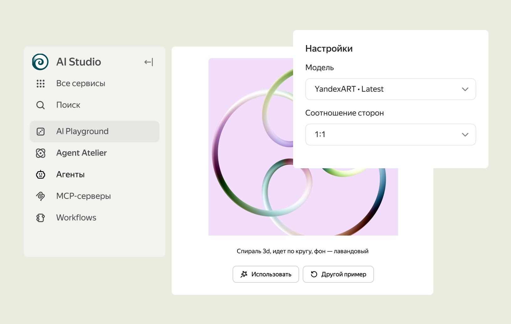 Playground — это интерактивная среда для экспериментов с моделями. Выберите модель, введите запрос и сразу посмотрите, как она отвечает в реальном времени.